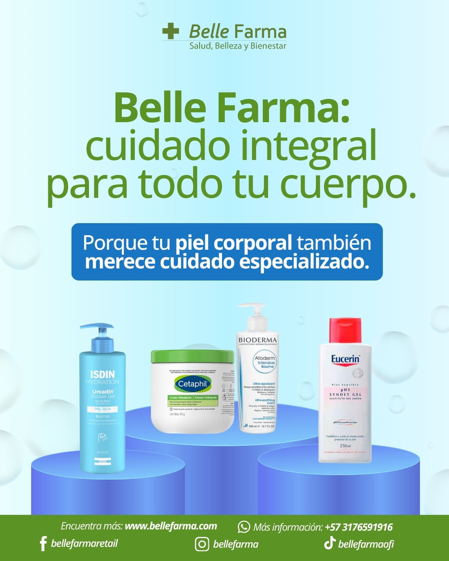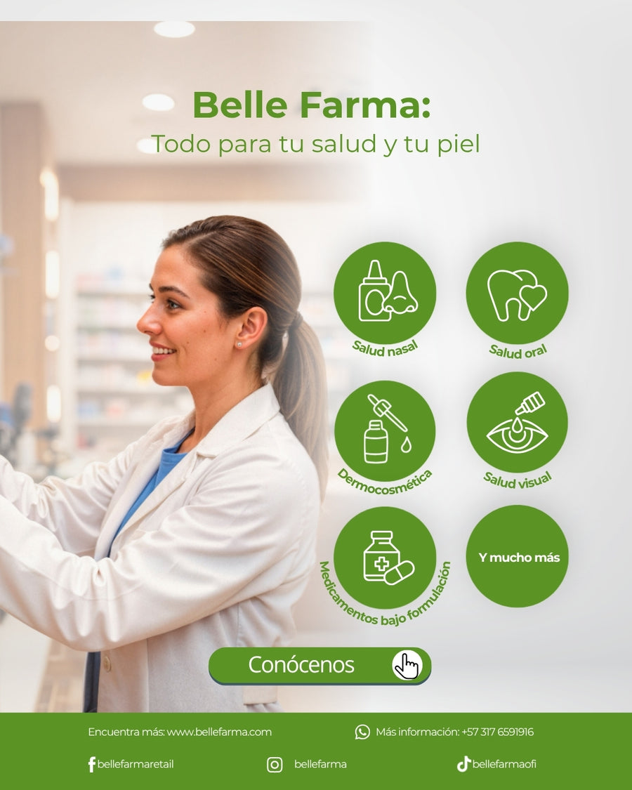 En Belle Farma reunimos salud, belleza y bienestar, con una selección especializada de productos dermatológicos, salud oral y medicamentos, avalados por marcas reconocidas y recomendadas por dermatólogos. Tu piel merece lo mejor, y nosotros te ayudamos a encontrarlo.