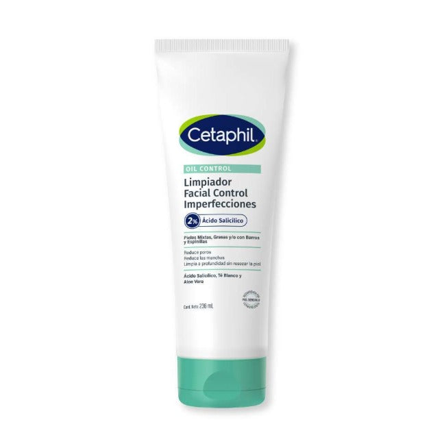 Cetaphil oil control es un limpiador en gel para pieles mixtas a grasas contiene ácido salicílico, té blanco y áloe vera, reduce los poros y elimina el exceso de grasa sin resecar la piel, ayuda a eliminar los brotes, los puntos negros y los puntos blancos sin causar sequedad ni irritación. Minimiza el brillo y la apariencia de los poros. Probado clínica y dermatológicamente en pieles sensible y reactivas.
